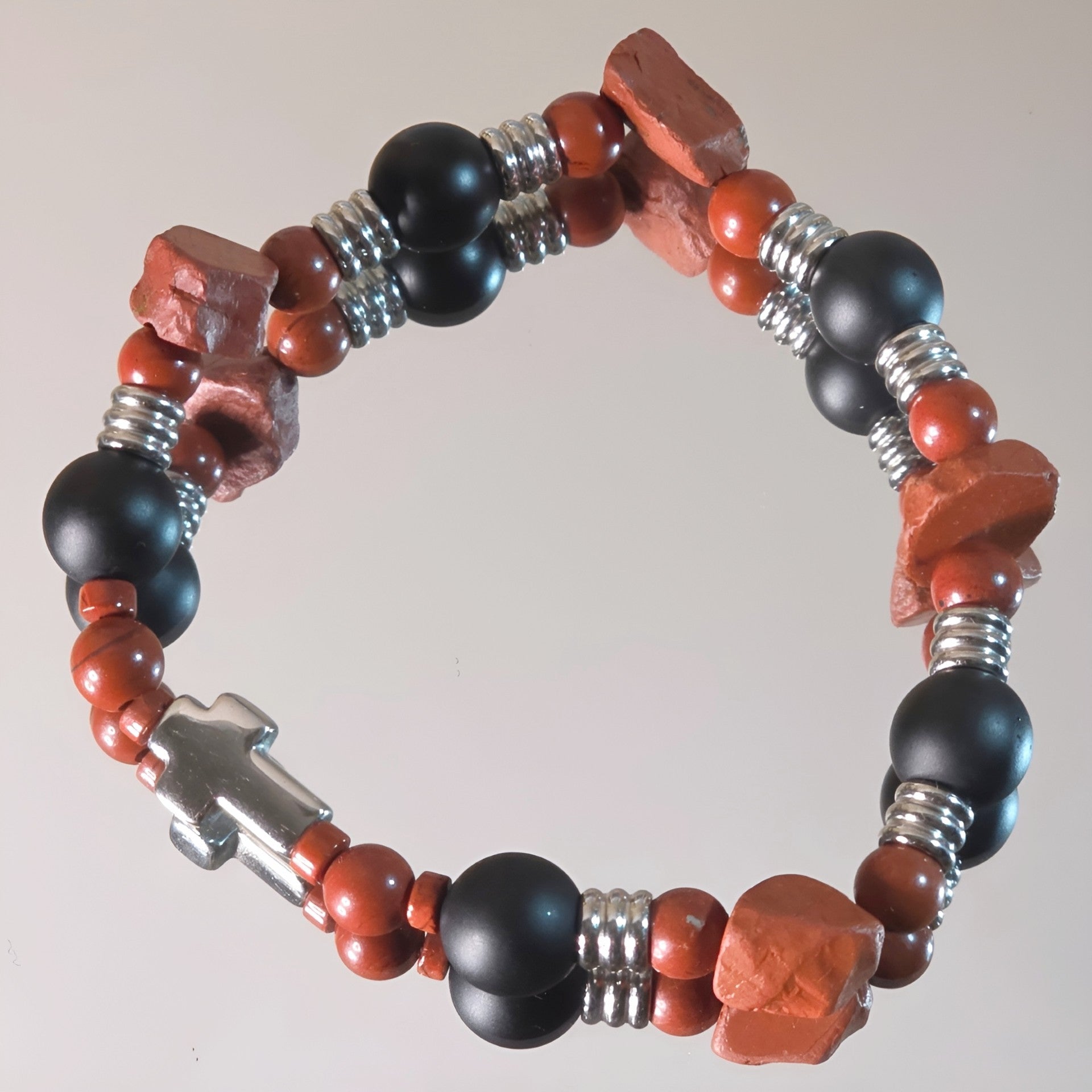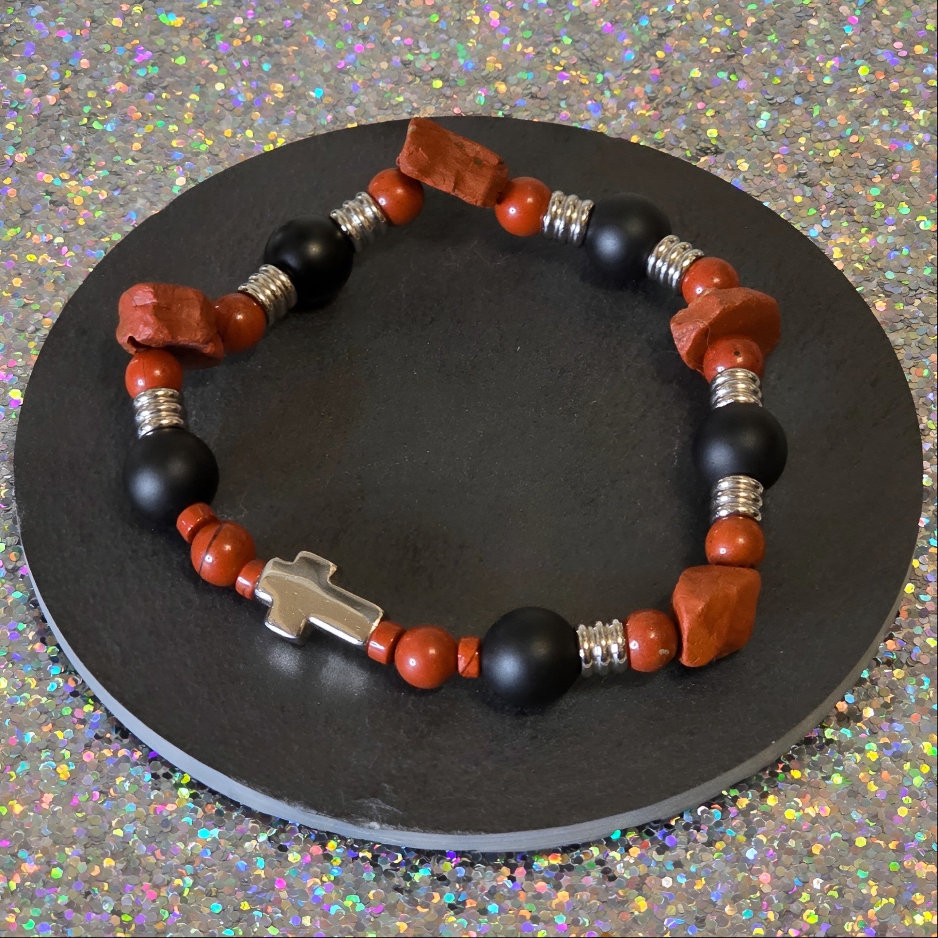 Das Kreuz in der Mitte symbolisiert Glauben, Vertrauen und Stärke – ein feines Detail, das dem Armband eine spirituelle Tiefe verleiht.