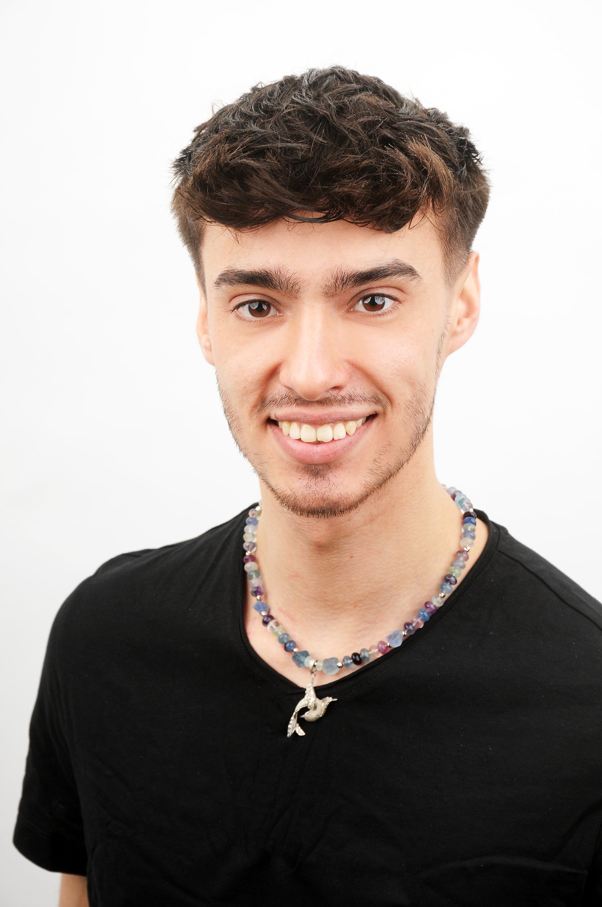Fluorit Energie Kette mit Anhänger Vogel Sterlingsilber 925er rhodiniert Kronenchakra