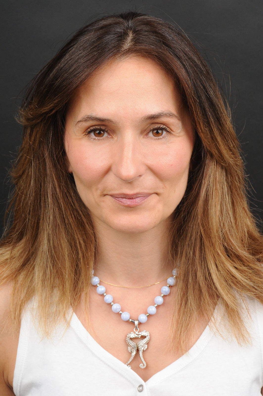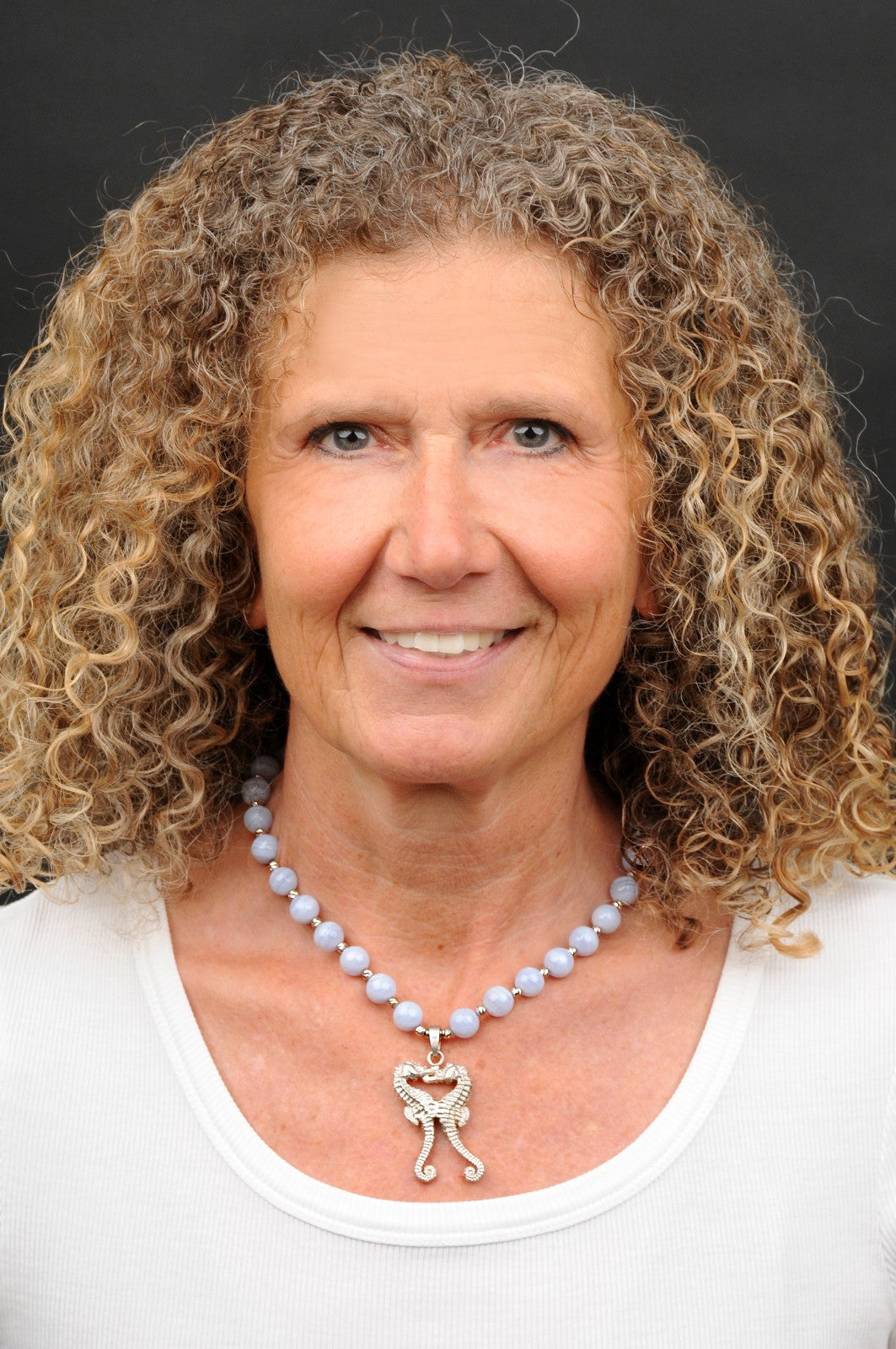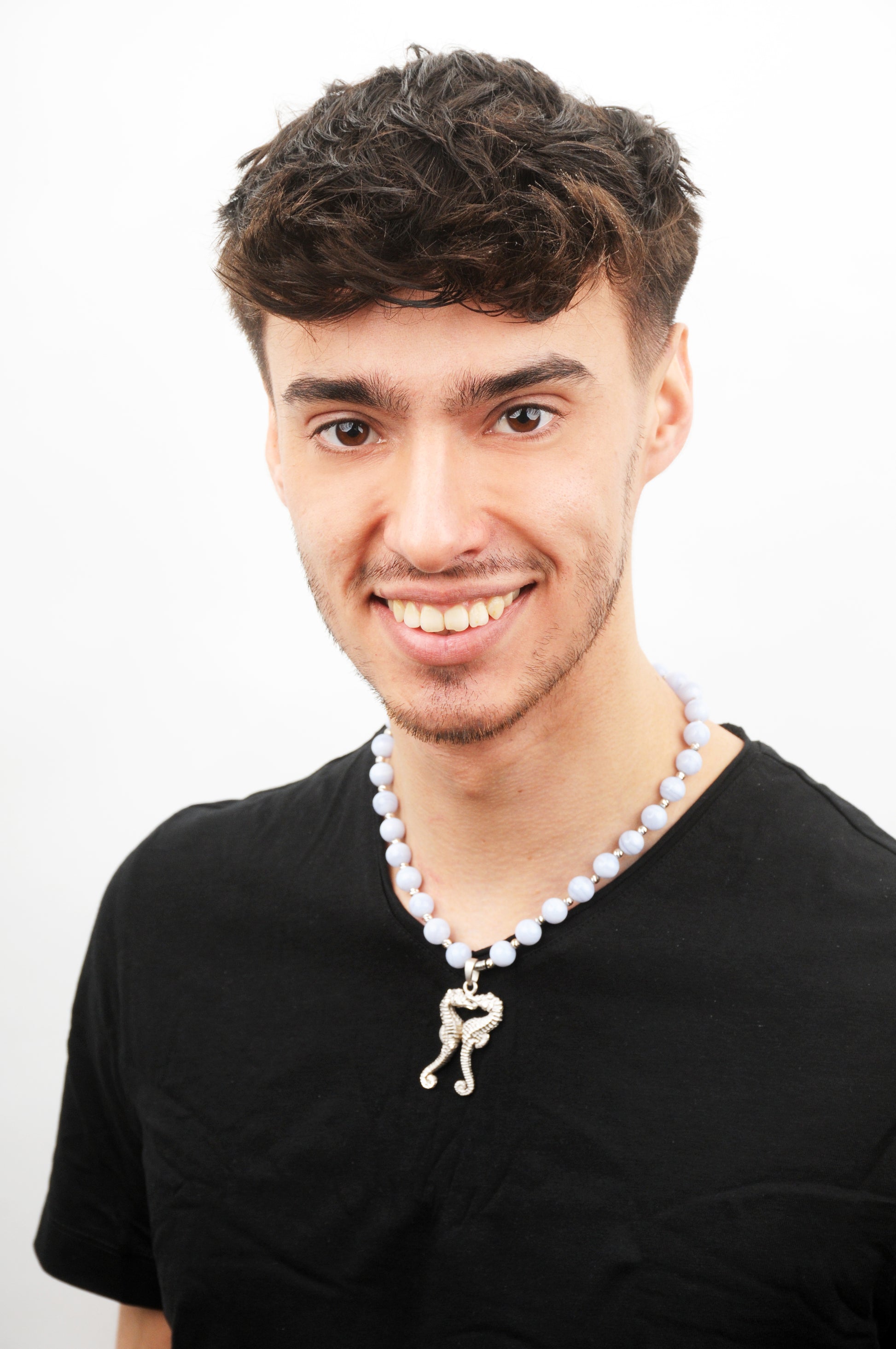 blauer Chalcedon Energie Kette mit Anhänger zwei Seepferdchen Sterlingsilber 925er rhodiniert Halschakra