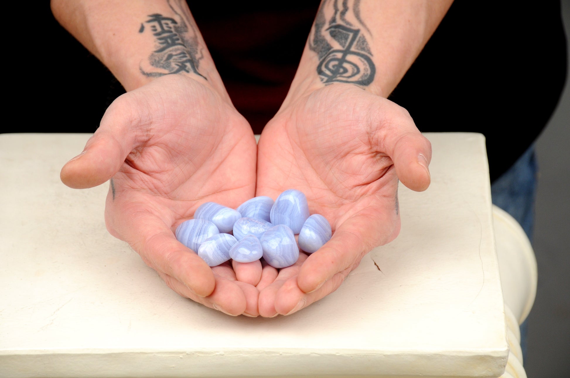 blauer Chalcedon Energie Stein Halschakra
