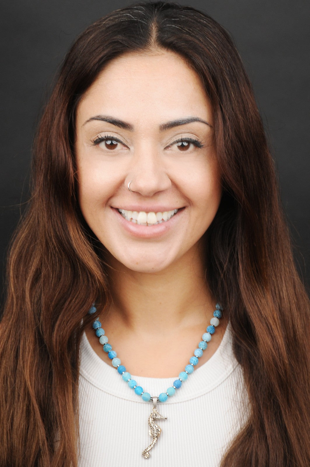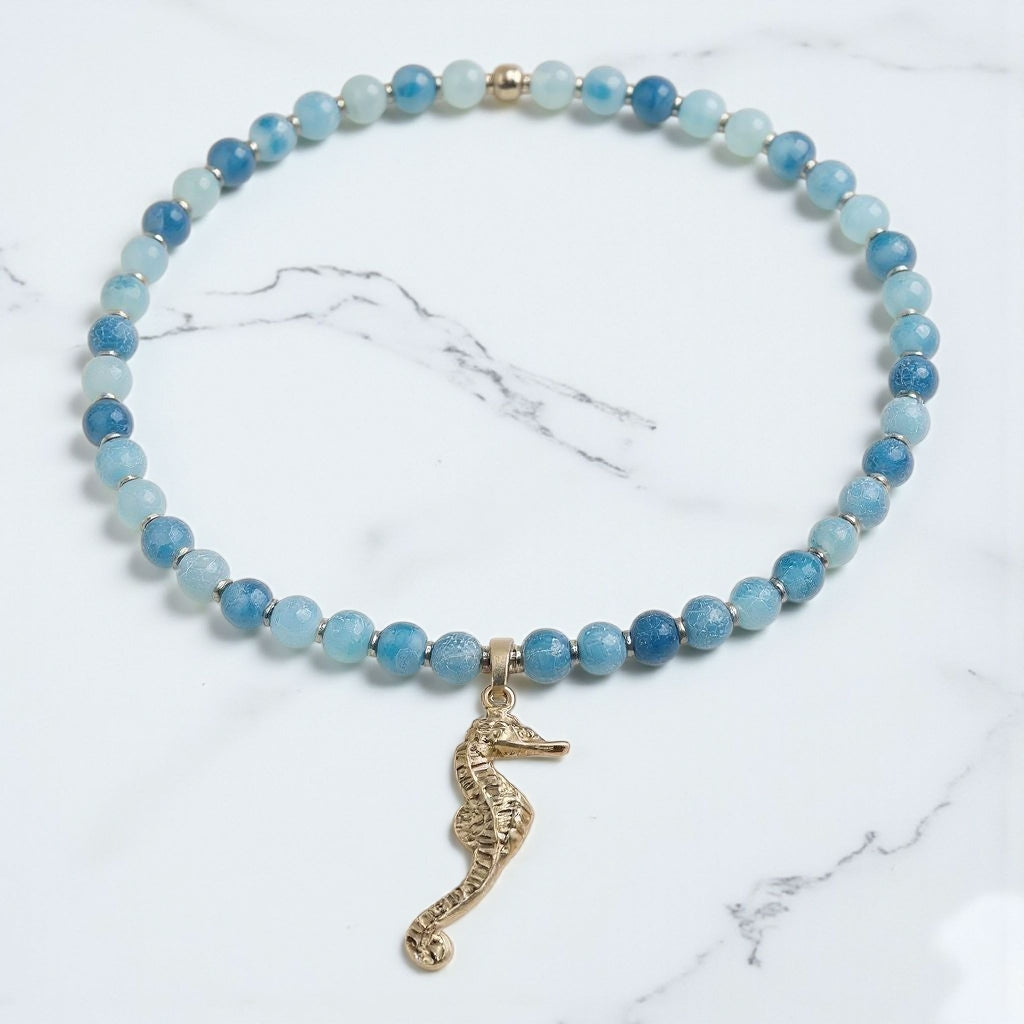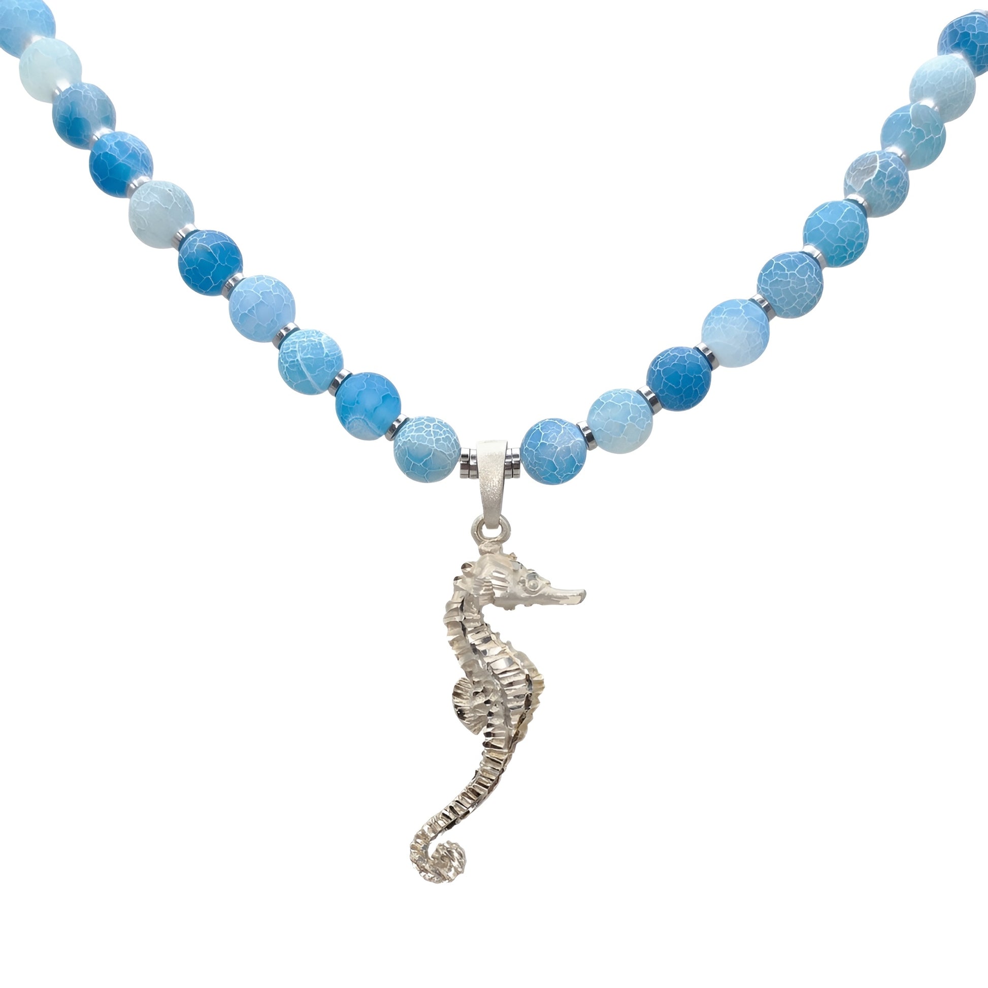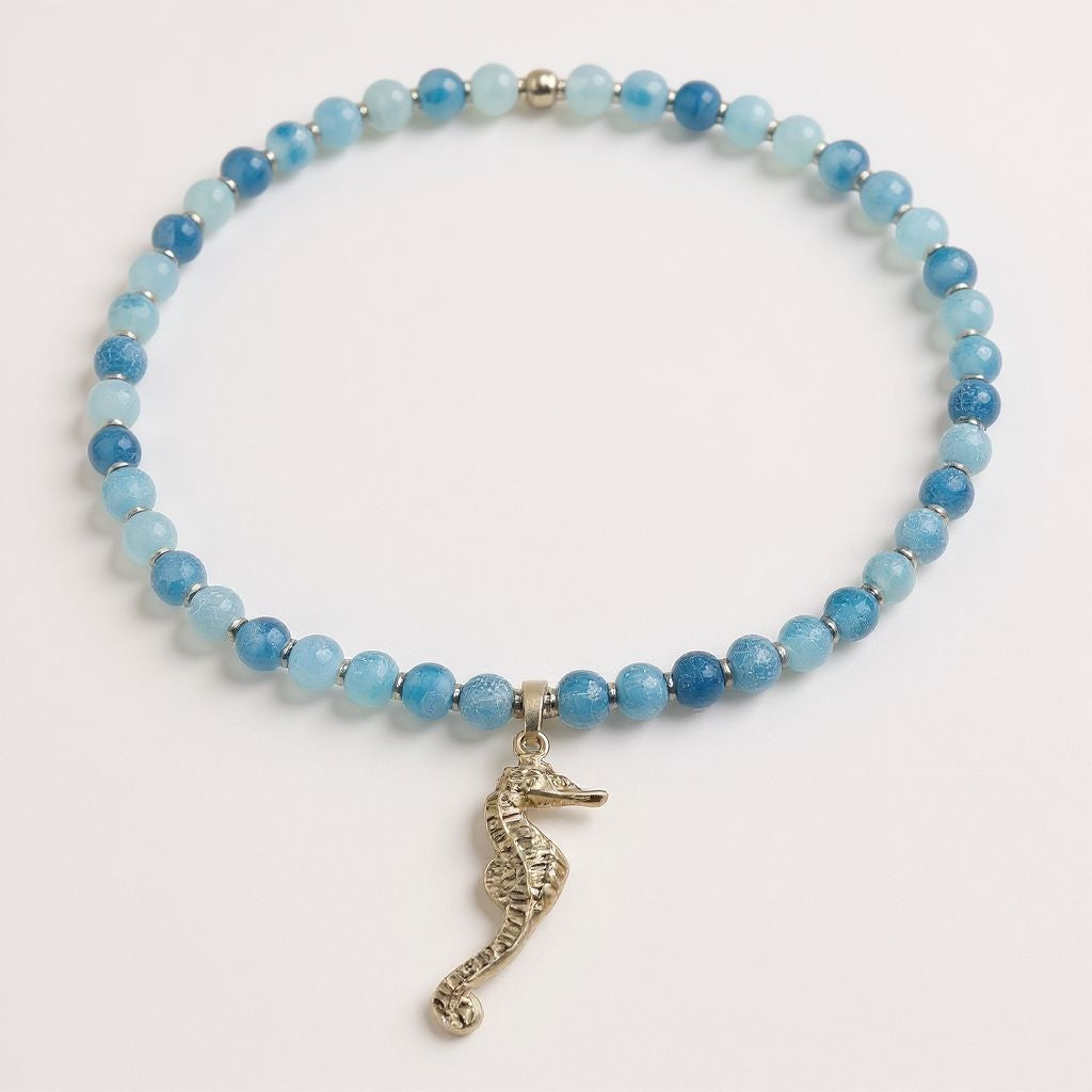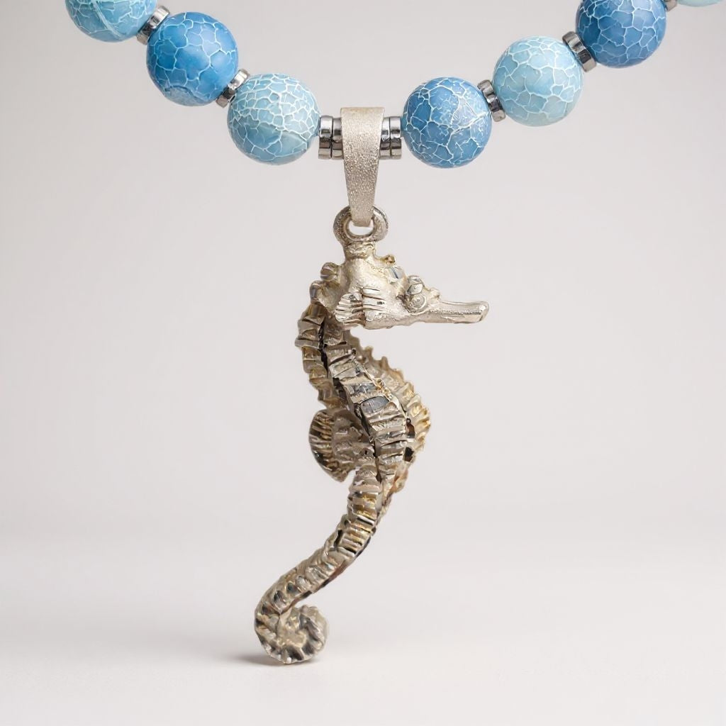 Schlangenachat Energie Kette mit Anhänger Seepferdchen Sterlingsilber 925er rhodiniert Halschakra & Wurzelchakra