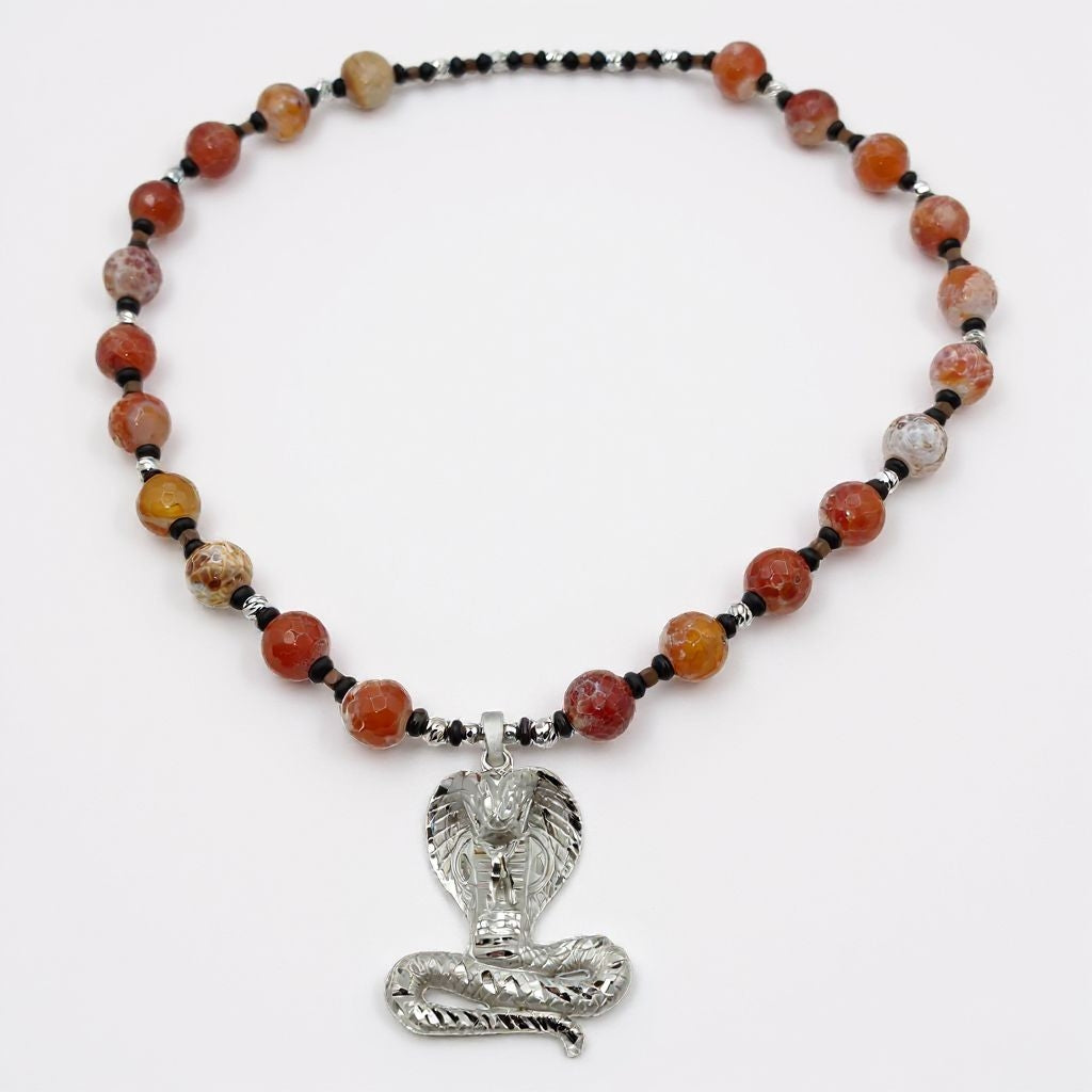 Schlangenhautachat Energie Kette mit Anhänger Kobra Sterlingsilber 925er rhodiniert Herzchakra