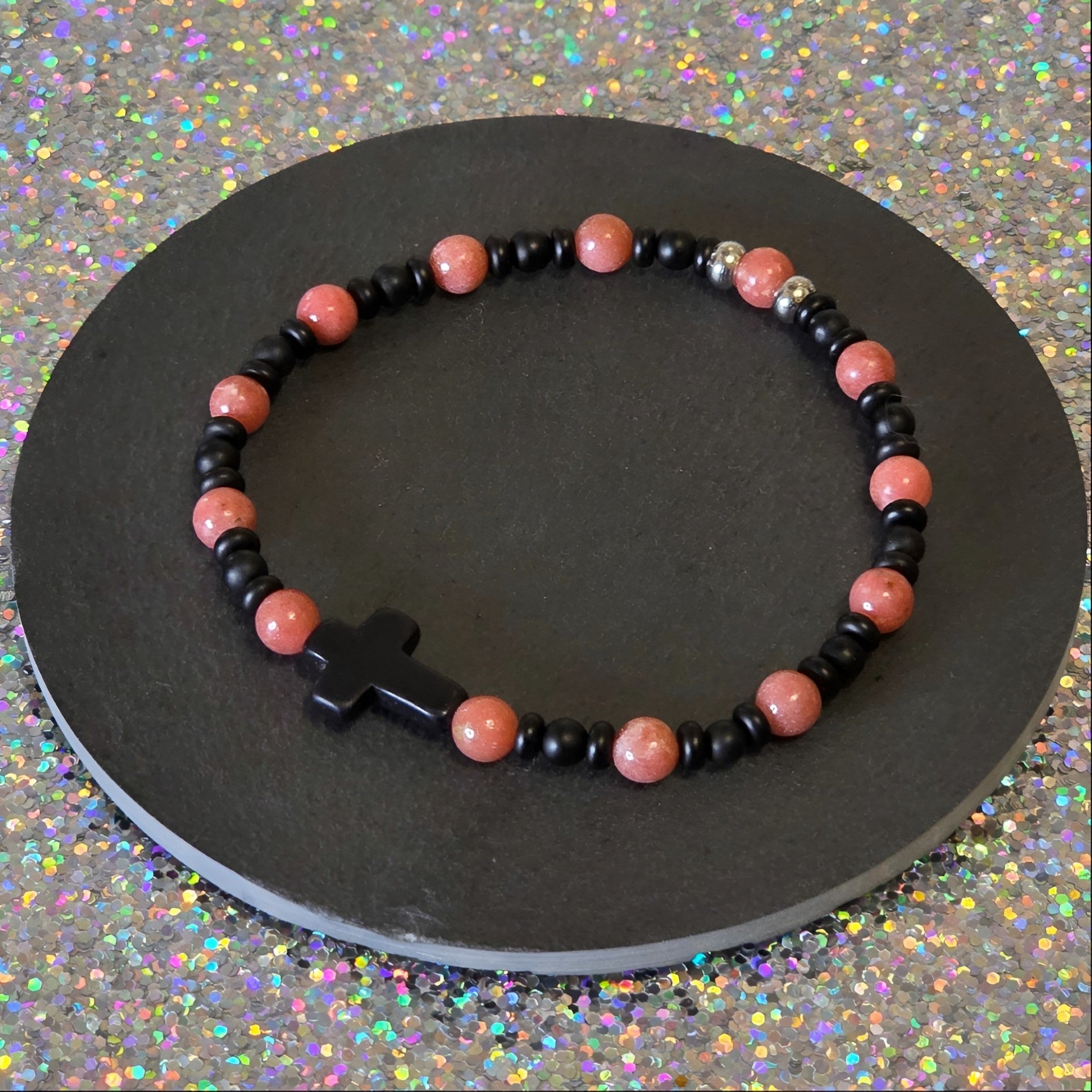 Das Armband „Amalia“ vereint die zart-rosige Herzensenergie des Thulits mit der ruhigen, kraftvollen Präsenz des Onyx. Es lädt dich ein, Lust auf das Leben zu spüren – auf Nähe, Verbundenheit und Herzenswärme.